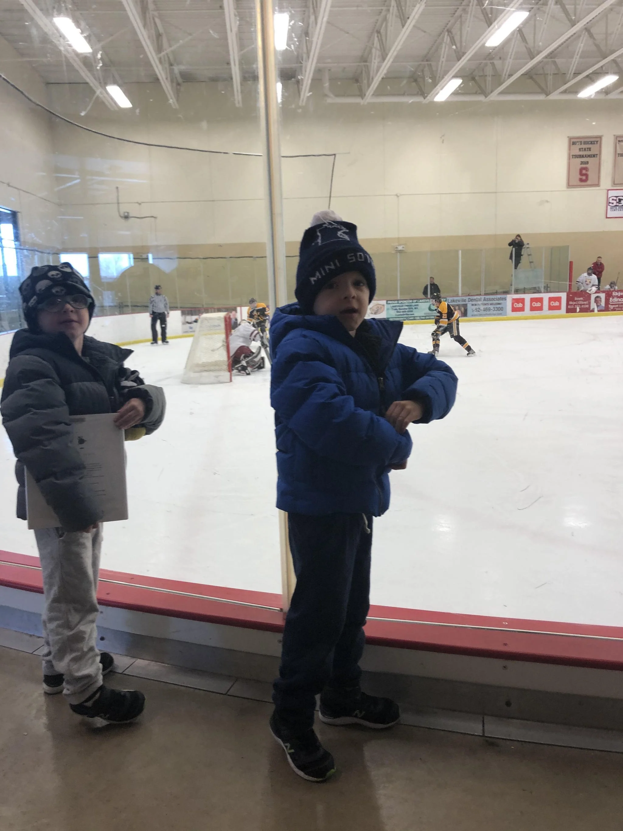 The boys watch their brother play hockey, they cheer on their brother while using me as a jungle gym, while other little kids have the time of their lives running up and down the stairs and around the rink meeting new friends that can do the same. Nope, not my kids.